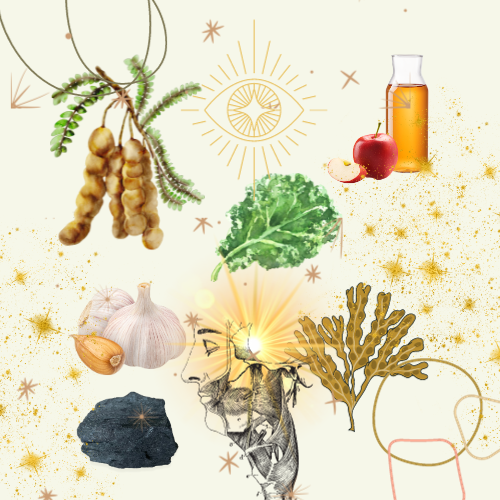 1. VITAMINA K1/K2. La K1 è la vitamina primaria presente nella maggior parte delle verdure a foglia verde. La K2 viene creata dalla microflora dell’intestino e si trova in alimenti come crauti, olio di alghe (omega 3). 2. IODIO. Gli studi hanno dimostrato che lo iodio elimina il fluoruro di sodio attraverso le urine. La maggior parte delle persone è carente di iodio, quindi mangiare cibi ricchi di iodio, come le alghe, è essenziale per il mantenimento di base della pineale. Tieni presente che lo iodio abbassa naturalmente il ferro e il calcio, quindi assicurati di mangiare molti cibi verde scuro per aumentare il calcio e il ferro. Per non incappare in rischi inutili, puoi assumere fino a 5 gr di alghe al giorno. Le mie preferite? Lattuga di mare, Dulse e Nori. 3. AGLIO. È noto che l’aglio crudo disintossica la ghiandola pineale sciogliendo il calcio in eccesso (calcificazione). 4. ACETO DI SIDRO DI MELE. L’aceto di mele crudo è ricco di acido malico che disintossica questa ghiandola, quindi puoi aggiungerlo a insalate, zuppe, condimenti per insalate e altro ancora e goderti i suoi benefici. 5. TAMARINDO. Il tamarindo è comunemente usato nella cultura ayurvedica e in quella centro-sudamericana poiché non solo è delizioso ma è stato utilizzato efficacemente per eliminare il fluoro attraverso le urine. 6. CARBONE ATTIVO. Conosciuto per la sua capacità di legarsi ad alcuni veleni, metalli pesanti e altre tossine e di eliminarli dal corpo, lo rende una sostanza meravigliosa per la disintossicazione acuta e generale. ALTRI SUPERFOOD che hanno dimostrato di decalcificare la pineale: boro, cacao, bardana e radice di tarassaco.